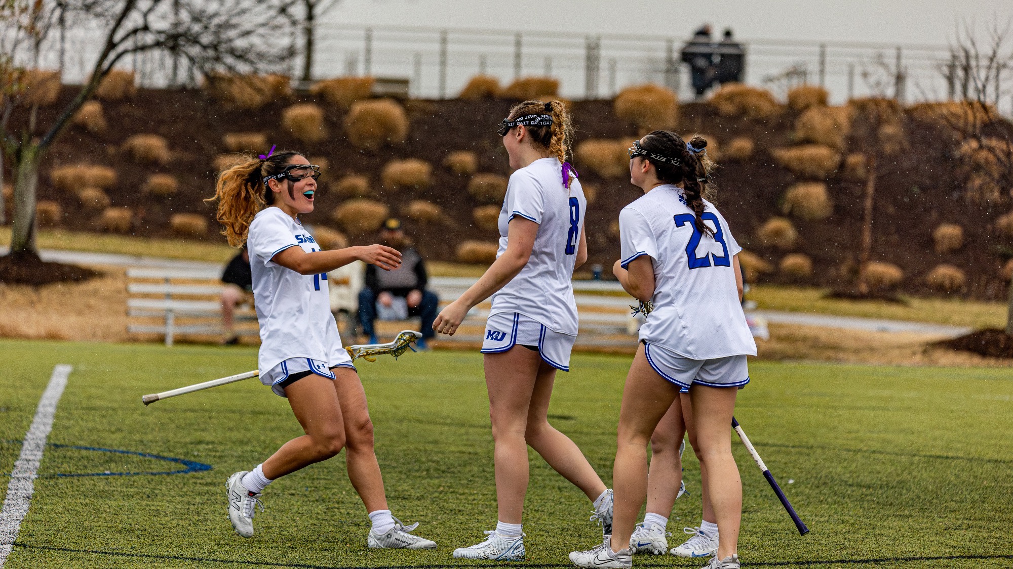 Jacki Belker added two goals and three assists, Megan McGuirk had two goals and an assist while Molly Maher notched a lone goal and two assists. Catina Boster and Natalie Tinkham both scored single goals as well for the Blue and White.
