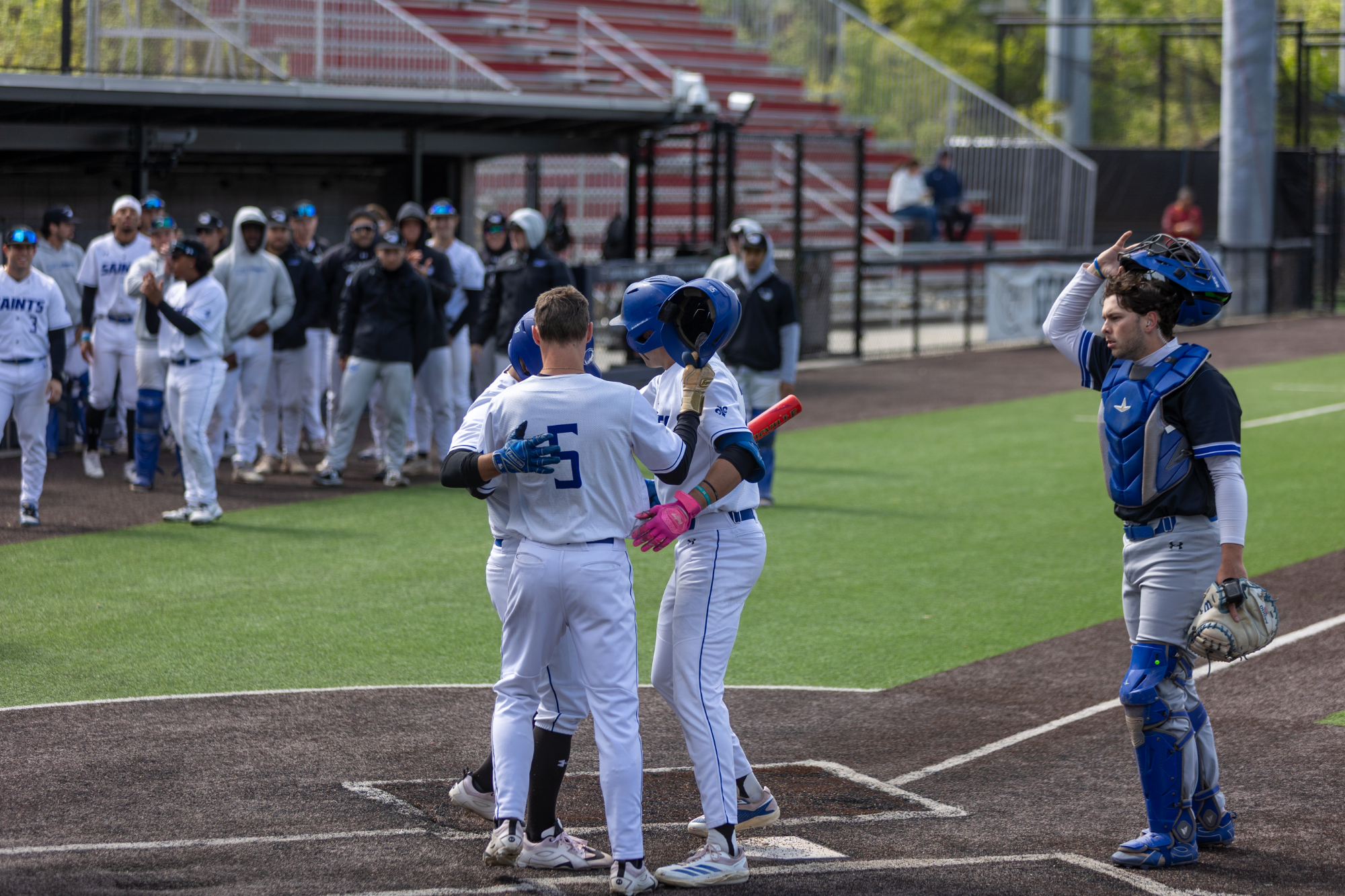 McDaniel scored its final two runs in the fifth to cut its deficit to one. However, the Saints didn't leave any doubt, adding three more runs over the fifth and sixth innings to put the game away. In the bottom of the fifth, Maylie singled through the right side to bring home junior Casey Baker. It was followed in the sixth with a fielder's choice to second base by Ferrara to score sophomore Bryce Smith, and Wojcik put the final touch on the game with a RBI single to left field.